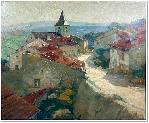 CORRETTE Marcel . Eglise de Neuviller. Huile sur toile, signée en bas à droite, titrée et datée 1919 au dos. 38 x 46 cm.460€ le 17/06 à Saint-Dié