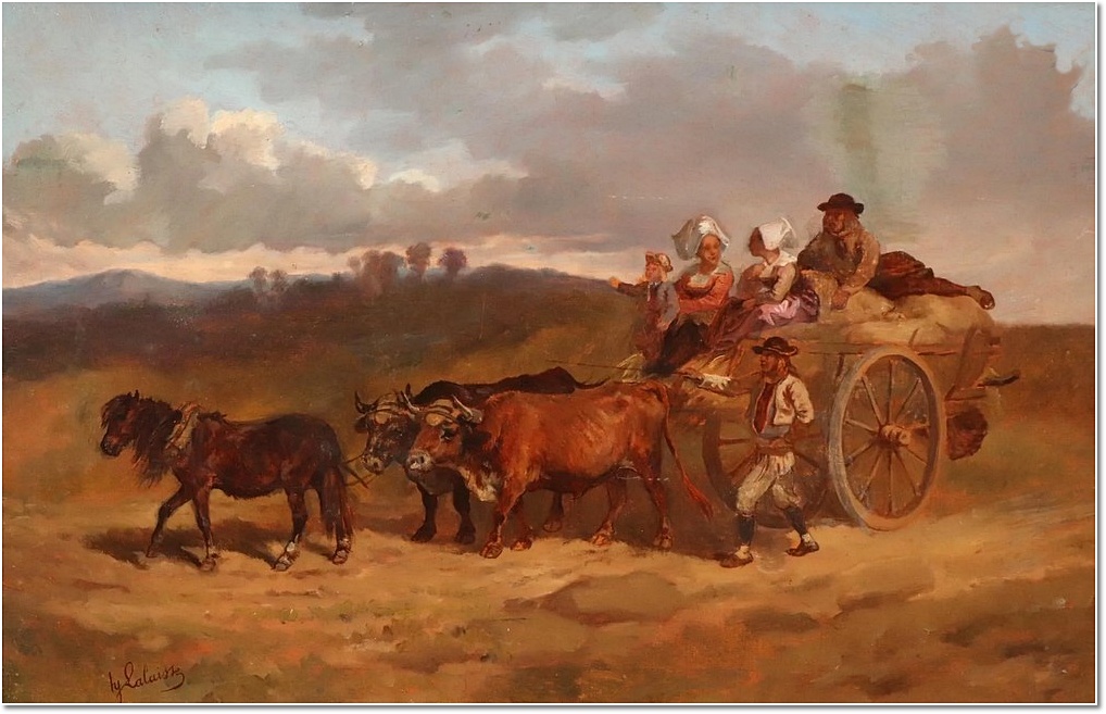 Paysans et marchands devant une chaumière Toile 38x46cm