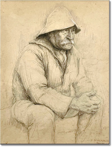courbée, semblent pénétrés d'un sentiment de profonde adoration. Signé
