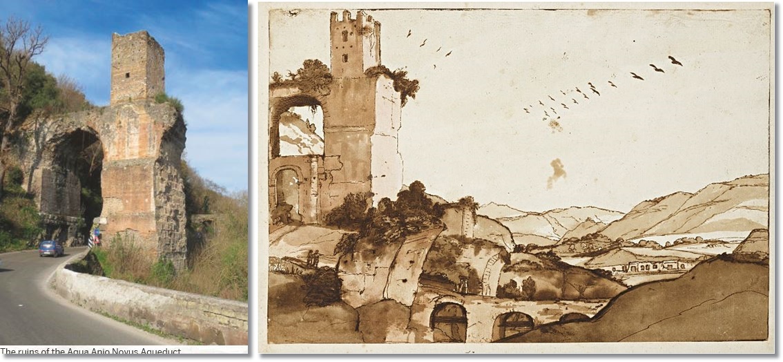 Personnages près de ruines romaines et d’un port.