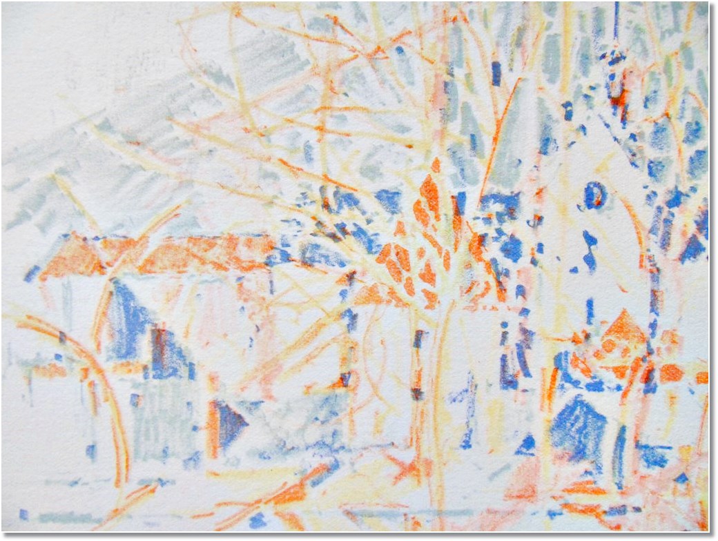 éléments réfléchis dans l’eau. Mais la composition de notre tableau est