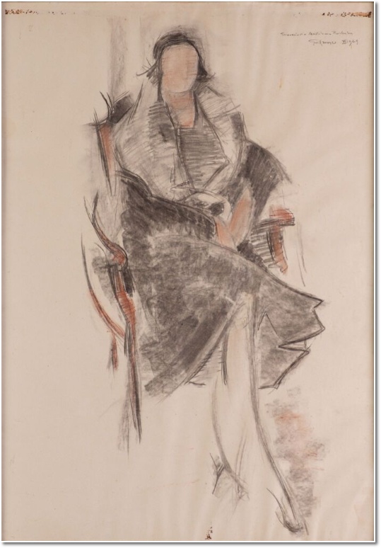 Victor GUILLAUME (1880-1942). "Portrait de Madeleine Barbulée". Fusain et aquarelle sur papier signée, dédicacée "en souvenir de Madeleine Barbulée" et datée "XII-1929" en haut à droite. 100€ Saint-Lô le 15/02/25.