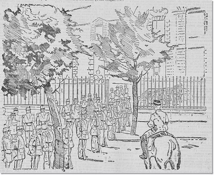 sévère des adjudants. Les bourgeois s'arrêtent pour les étudier, les