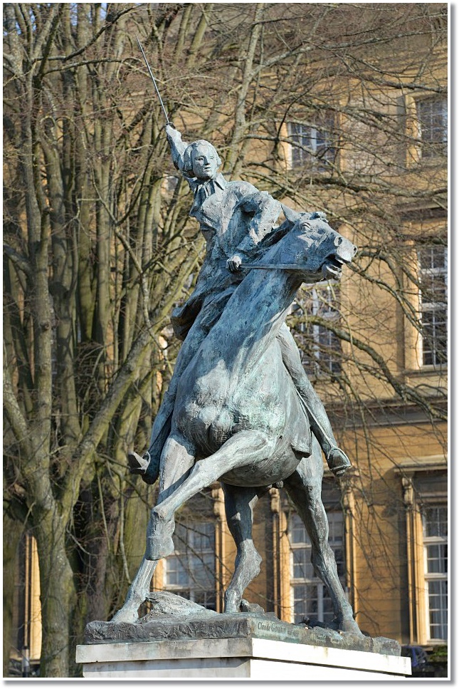 statue équestre de Lafayette qui se dresse fièrement à Metz, là-même où