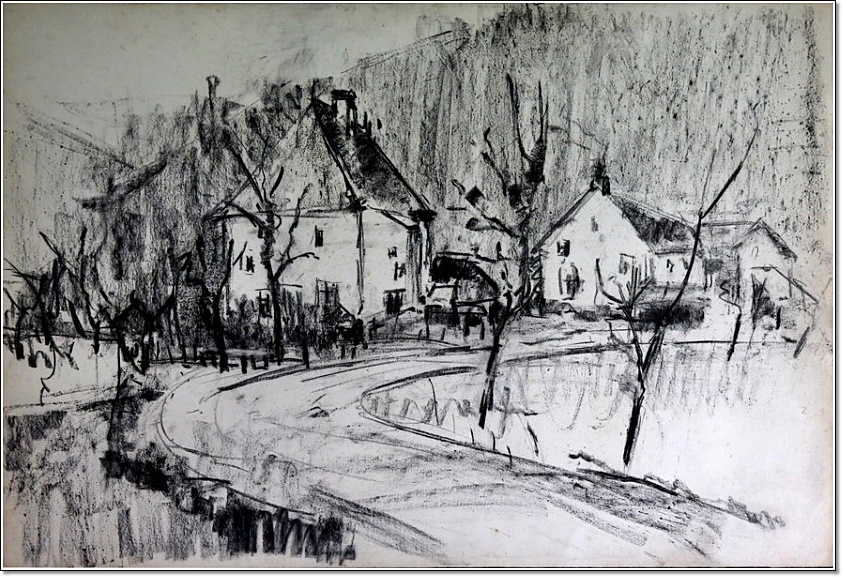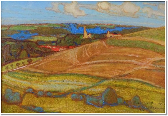 « Bainville-aux-Miroirs, 1920 ». Pastel, situé, daté et signé en bas à droite. 48 x 71 cm