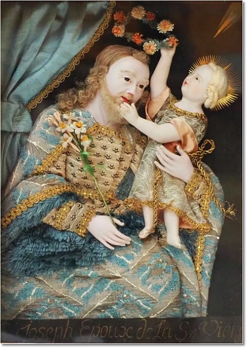 portant un voile de dentelle, collier de perles. - Saint Joseph,