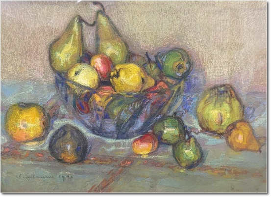 Victor GUILLAUME (1880 - 1942 ) - école de Nancy "nature morte aux fruits" pastel sur papier signé en bas à gauche et daté 1920 - 38 cm X 52 cm