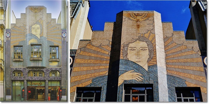 Toulouse, au 42 bis rue Alsace Lorraine, un immeuble art déco construit en 1926 par l'architecte Léon Jaussely. La mosaïque est réalisée par les artistes Gentil et Bourdet.
