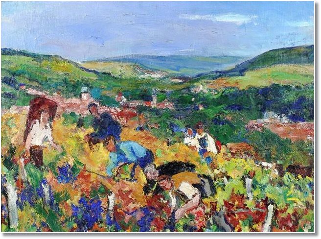 JOUCLARD Adrienne (1882-1972), Moisson à Onville, hst, sbd, 65 x 81 cm