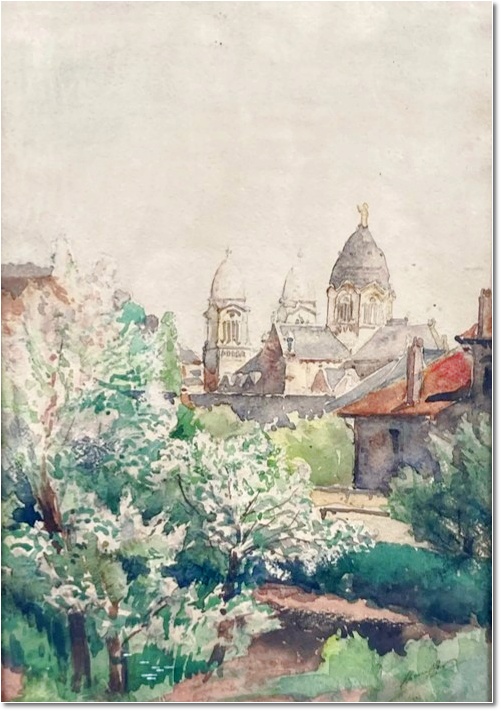 Paul KAUFFER (1870-1941). La basilique du Sacré-Cœur à Nancy (Lorraine). Aquarelle, signée en bas à droite. 33 x 22 cm.