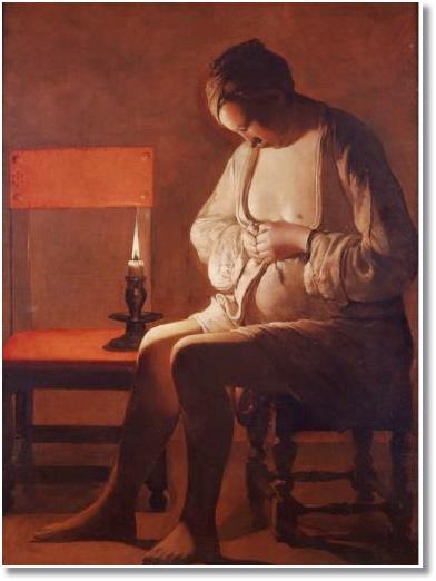 et éclairée par la lumière d’une chandelle. Nous avons affaire ici à un