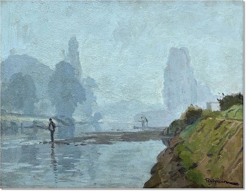 Raymond URBAIN "Paysage au pêcheur et au château",