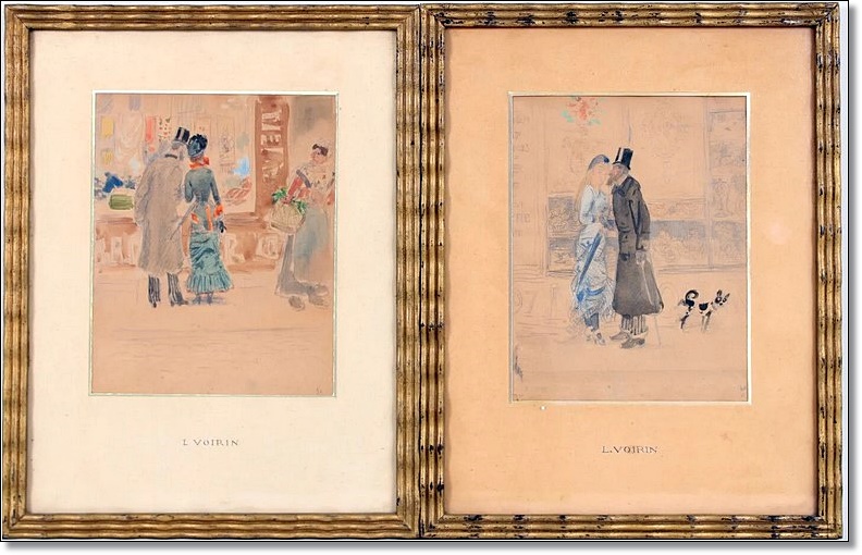 Aquarelle signée en bas à droite L. Voirin, cachet de vente